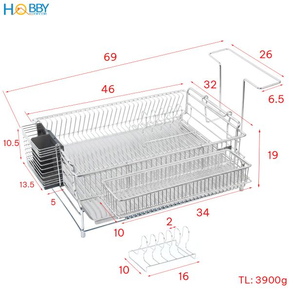 | Phụ kiện đi kèm | Khay hứng nước inox, Ống đũa, Giá thớt, Ốc vít |